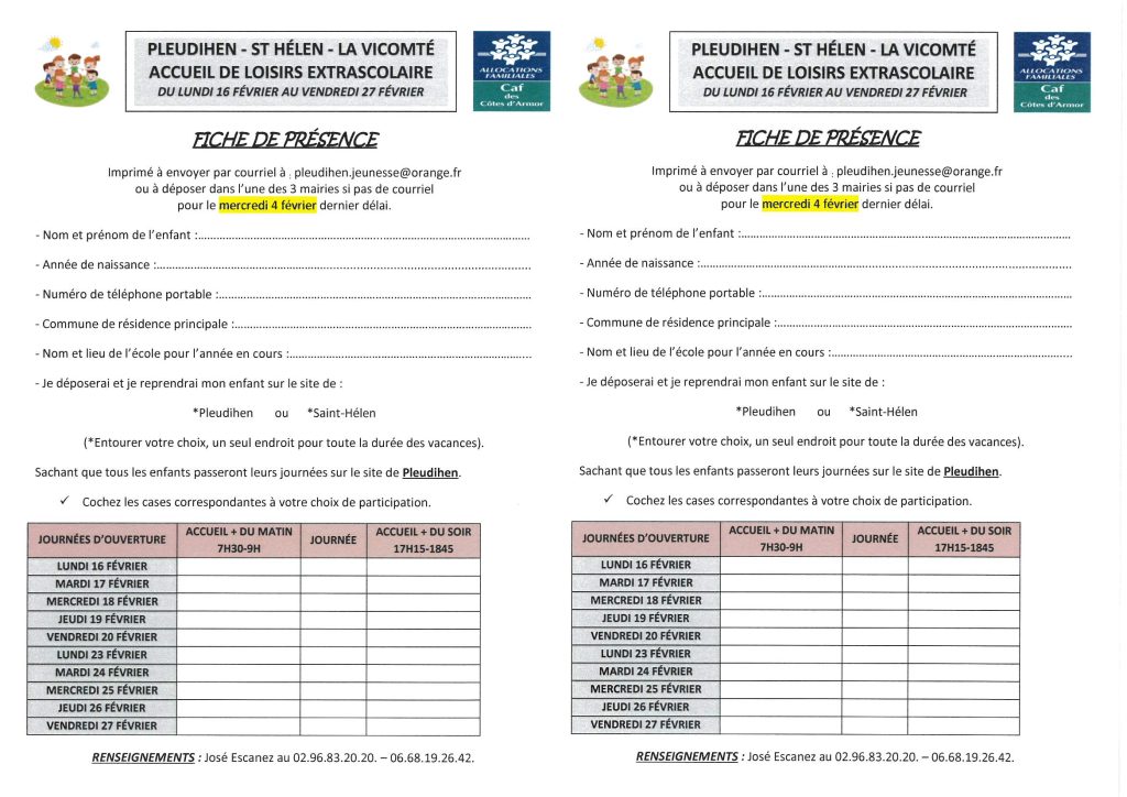 TOUTE ABSENCE NON SIGNALÉE VAUDRA FACTURATION